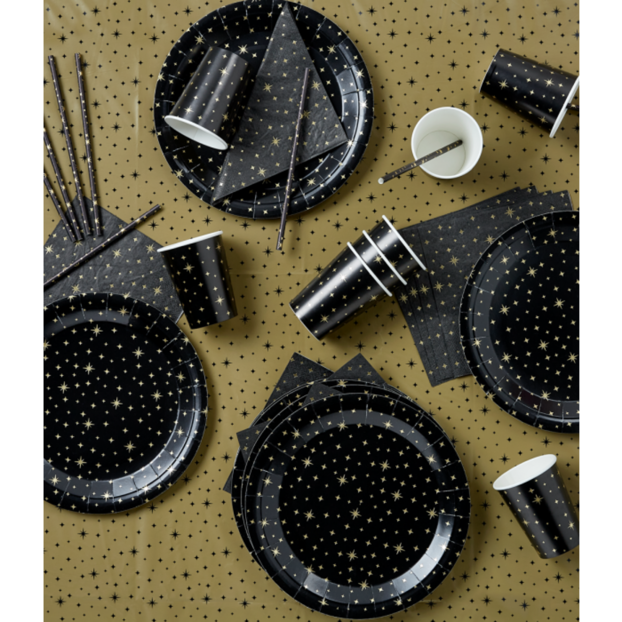Feestelijk dineren wordt pas echt feestelijk met deze leuke Table sets van Paper Dreams. Met deze tafelset kan een tafel extra feestelijk worden aangekleed en de gebruikte kleuren black/gold geven het geheel een chique tintje. Deze tableset black/gold bestaat uit een tafelkleed, 8 bekers, 16 servetten, 8 borden en 8x rietjes en ze worden verkocht per 8. Naast black/gold zijn de tafelsets ook te verkrijgen in de kleuren gold/white en rose/black. De table sets worden geleverd in een leuke box zodat u ze direct leuk in de winkel kunt presenteren.