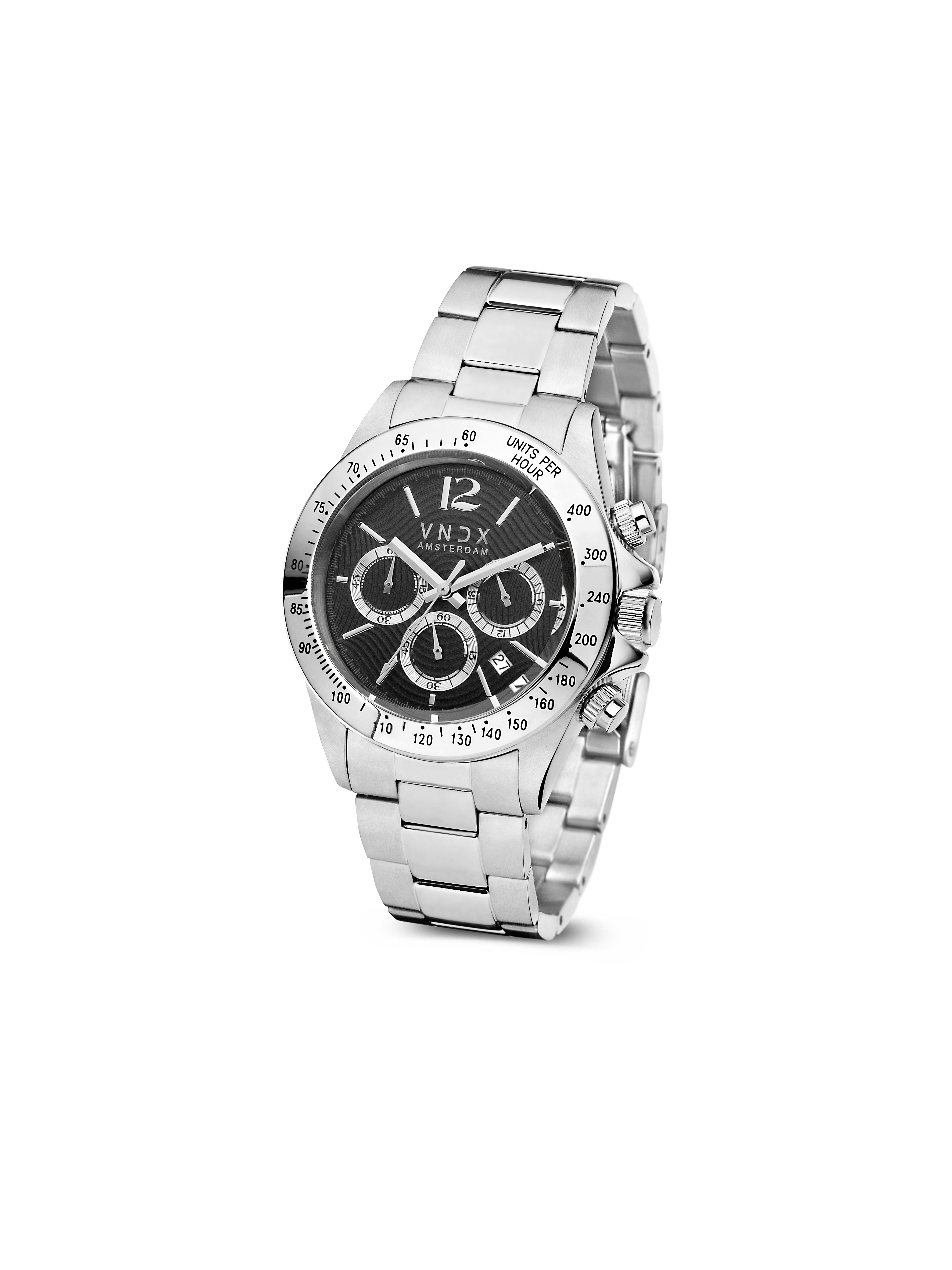 Met dit stevige roestvrijstalen horloge met stijlvolle zwarte wijzerplaat maak je overal een flitsende entree. Met dit horloge laat je zien wie de baas is. Wees je eigen baas. Never too late!