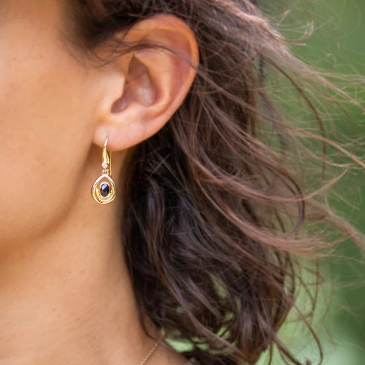 Deze vergulde oorbellen bevatten elk een 6 x 4 mm zwarte spinel en een 2 mm zirkonia.