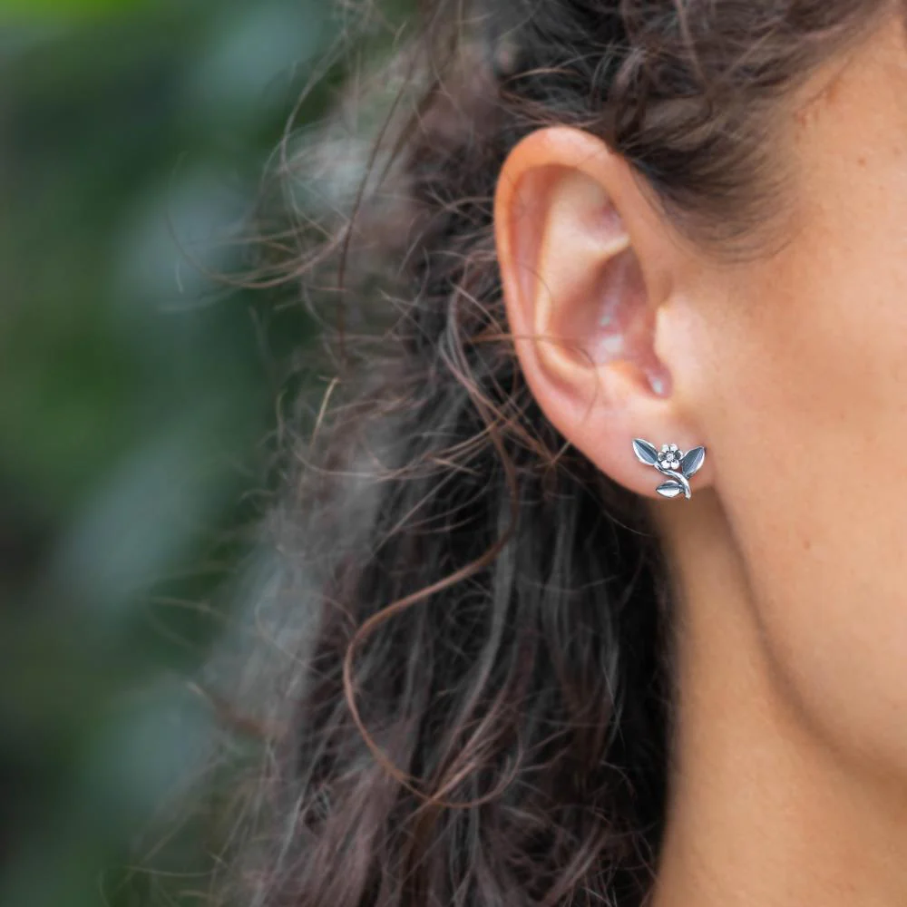 Deze stering zilveren oorknoppen hebben geoxideerde blaadjes en in het midden van het bloemetje een 1,5 mm ronde zirkonia.