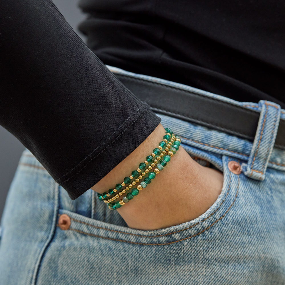 Armband van het merk Rebel & Rose. De armband heeft een hoogwaardige elastische stretch koord, met 4mm van Agaat, RVS ion-gold plated, Glas Rocailles, Glas Rock.