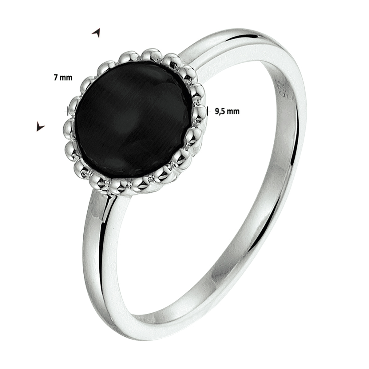 Beschrijving: Trendy gerhodineerd zilveren ring met een diameter van 9.5mm uitgevoerd met een onyx steen van 7mm. De ring is te combineren met bijpassende sieraden uit onze collectie. Info: Gerhodineerd zilver is door de rhodiumlaag beter bestand tegen verkleuren en krassen.