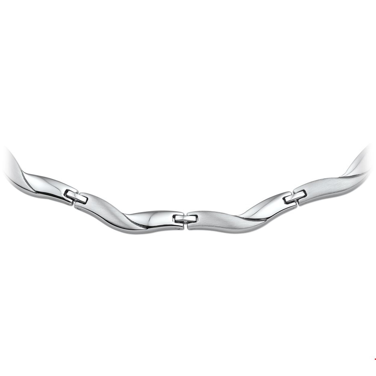 Beschrijving: Stalen collier met een poli/matte afwerking. De lengte van het collier bedraagt 42cm met 3cm extensie.