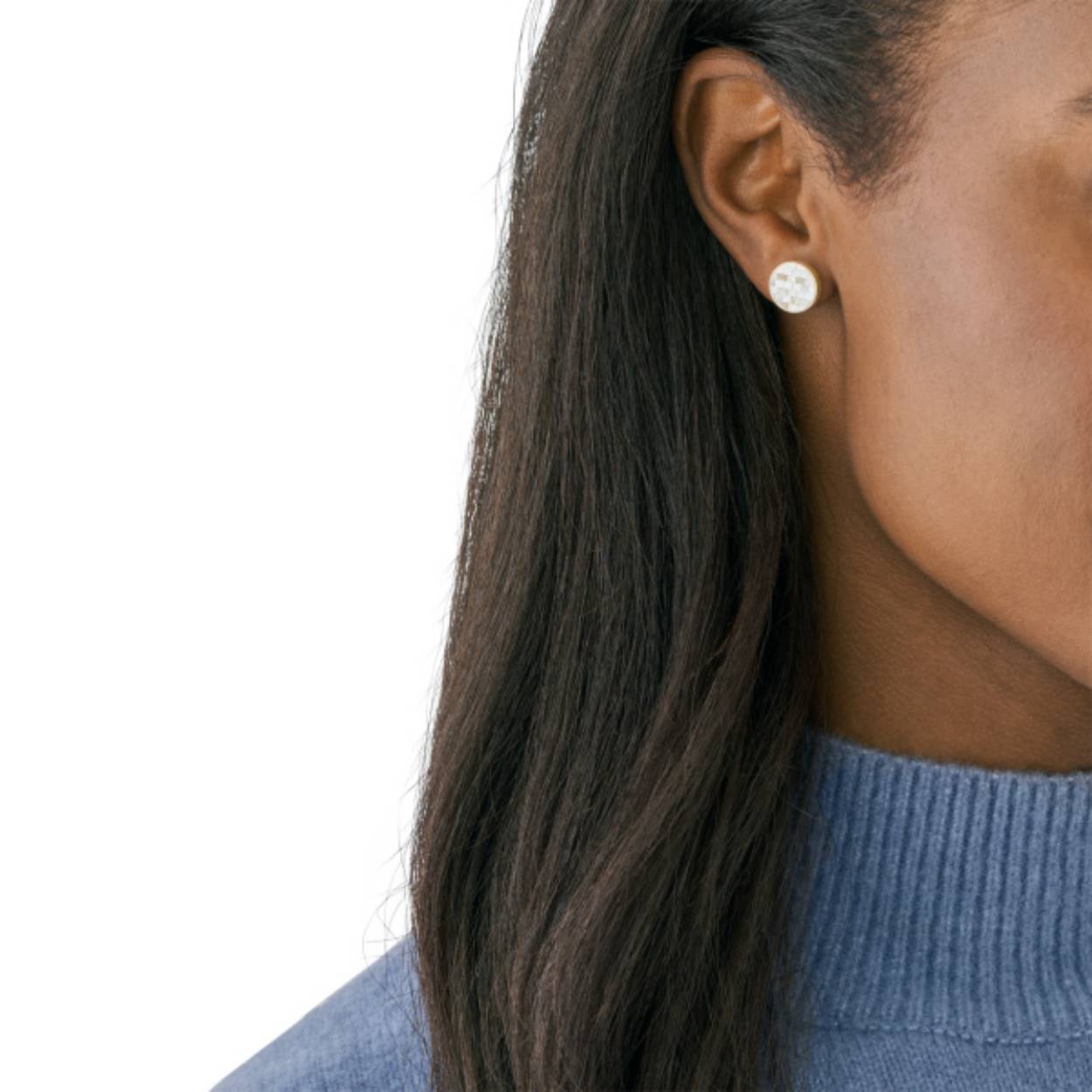 Deze oorknopjes zijn gemaakt van goudkleurig roestvrij staal, geaccentueerd met parelmoer en hebben sluitingen achter de oren.