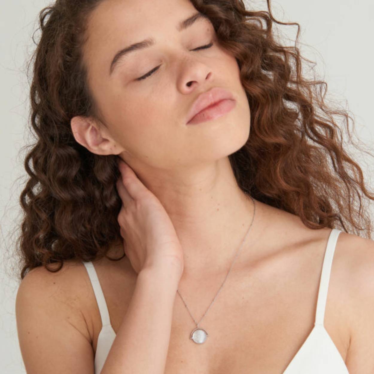Maak je outfit compleet met deze prachtige 925 sterling zilveren ketting van Ania Haie. De ketting bestaat uit een pendant in parelmoer met hierin een unieke gravering. De tijdloze sieraden uit de Wild Soul collectie geven de esthetiek van traditionele camee-sieraden een moderne twist. Prachtig in combinatie met de andere sieraden uit deze collectie.