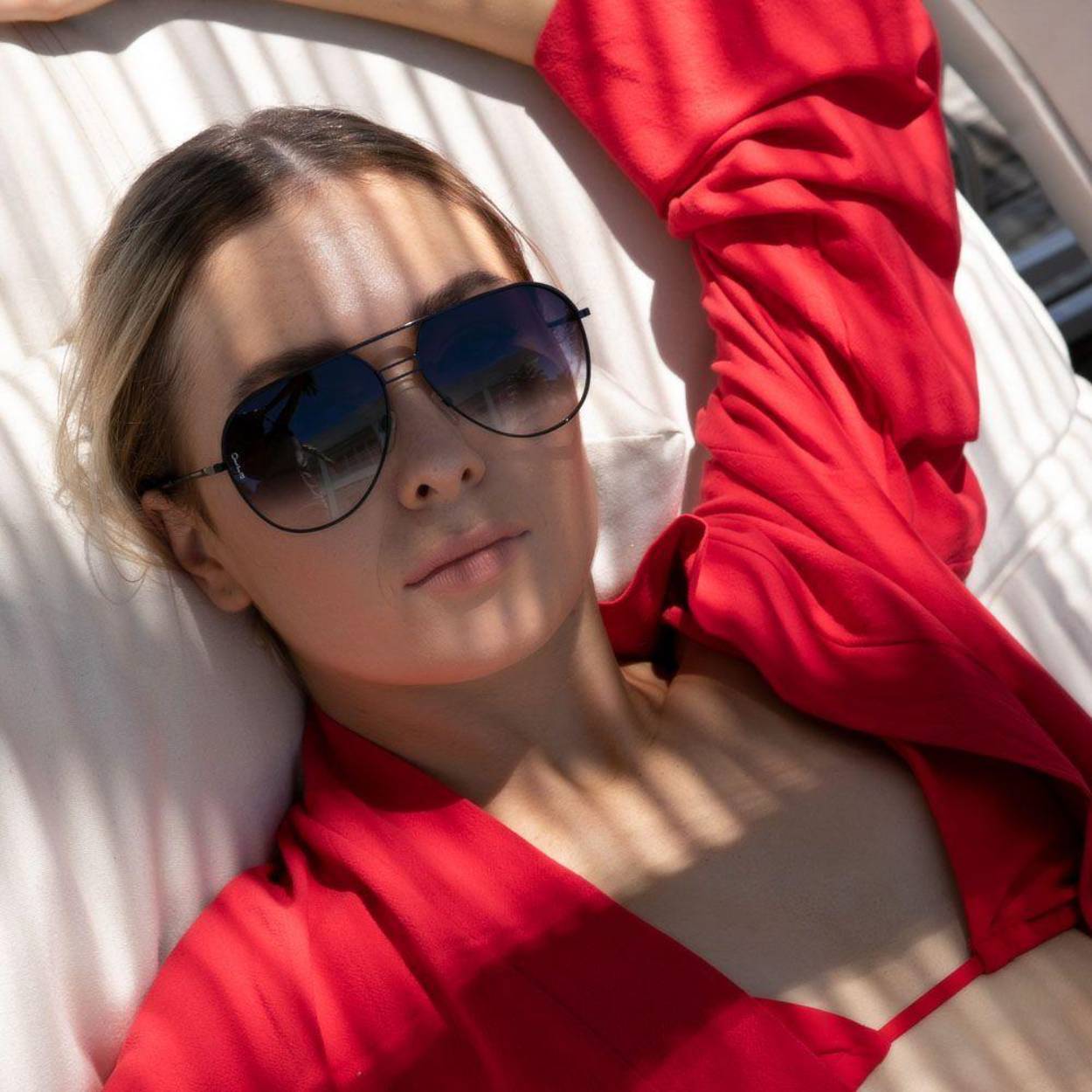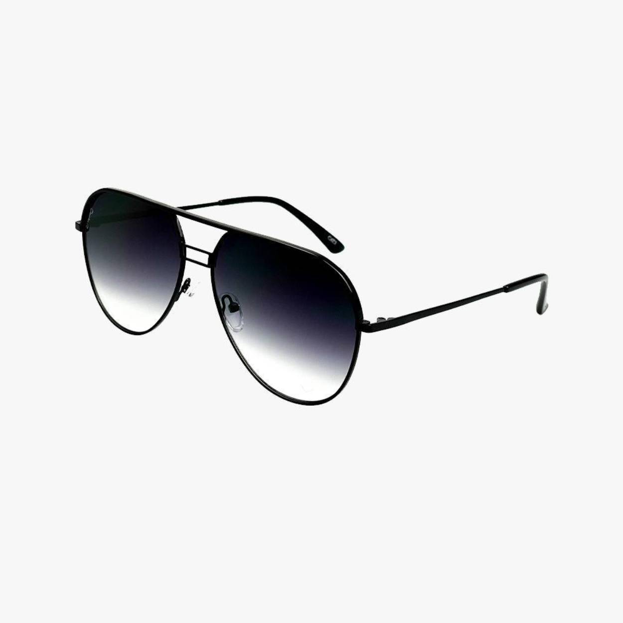 Trendy zonnebril, 100% UV-bescherming. Klassiek Aviator montuur. Wordt geleverd met een harde gradiënt smokey lens en met een zacht crèmekleurig Veganistisch etui.