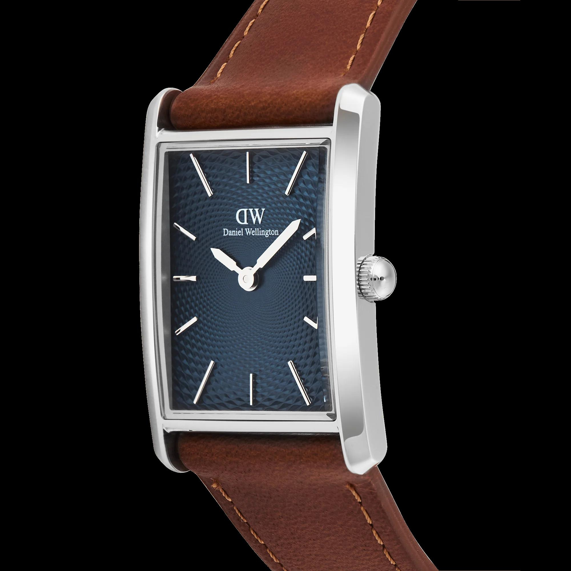 De Daniel Wellington Horloge BOUND 24X35 DURHAM ARCTICT GUILLOCHE (modelnummer: DW00100900) combineert elegantie met functionaliteit. Met een blauwe wijzerplaat, zilverkleurige rechthoekige kast en een bruine lederen band van 18 mm biedt het een verfijnde uitstraling. Ideaal voor dagelijks gebruik dankzij de quartz uurwerk en nikkelvrij ontwerp. Draag hem met zakelijke kleding voor een stijlvolle look.