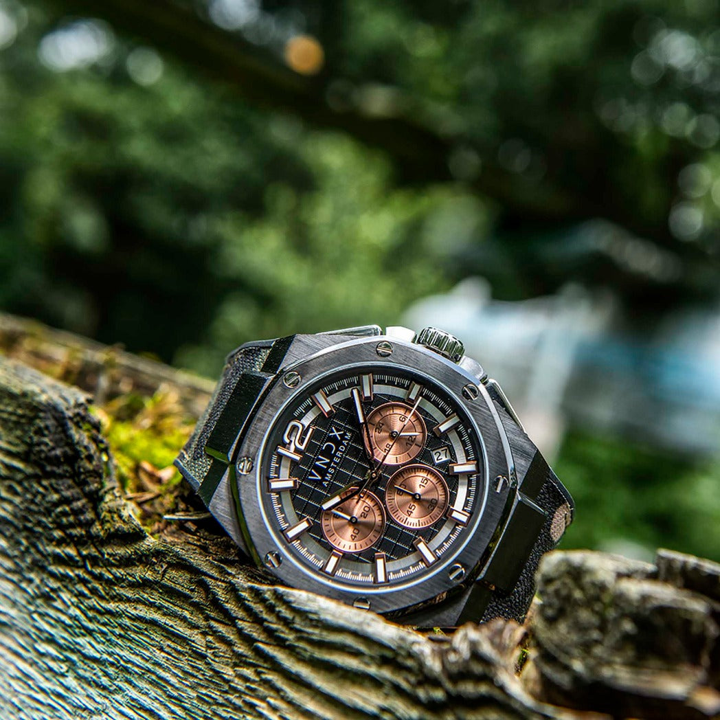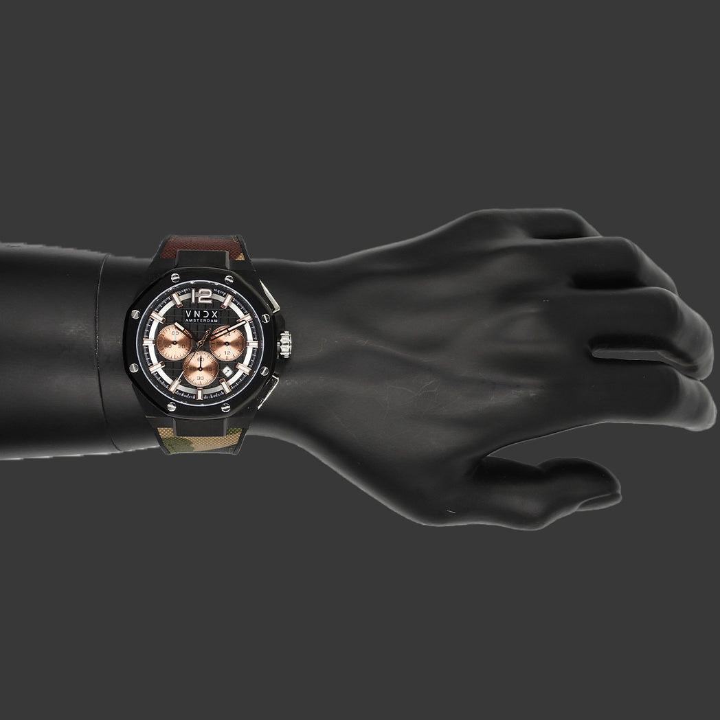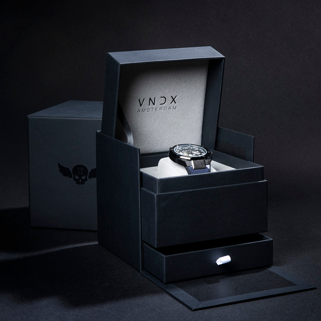 De Wise Man Silicon Green, de meest unieke serie binnen de collectie van VNDX. De intens zwarte kast heeft een diameter van 46 mm is voorzien van een stevig en slim uurwerk. De Wise Man sluit door zijn slimme pasvorm perfect aan op de pols van een Wise Man.