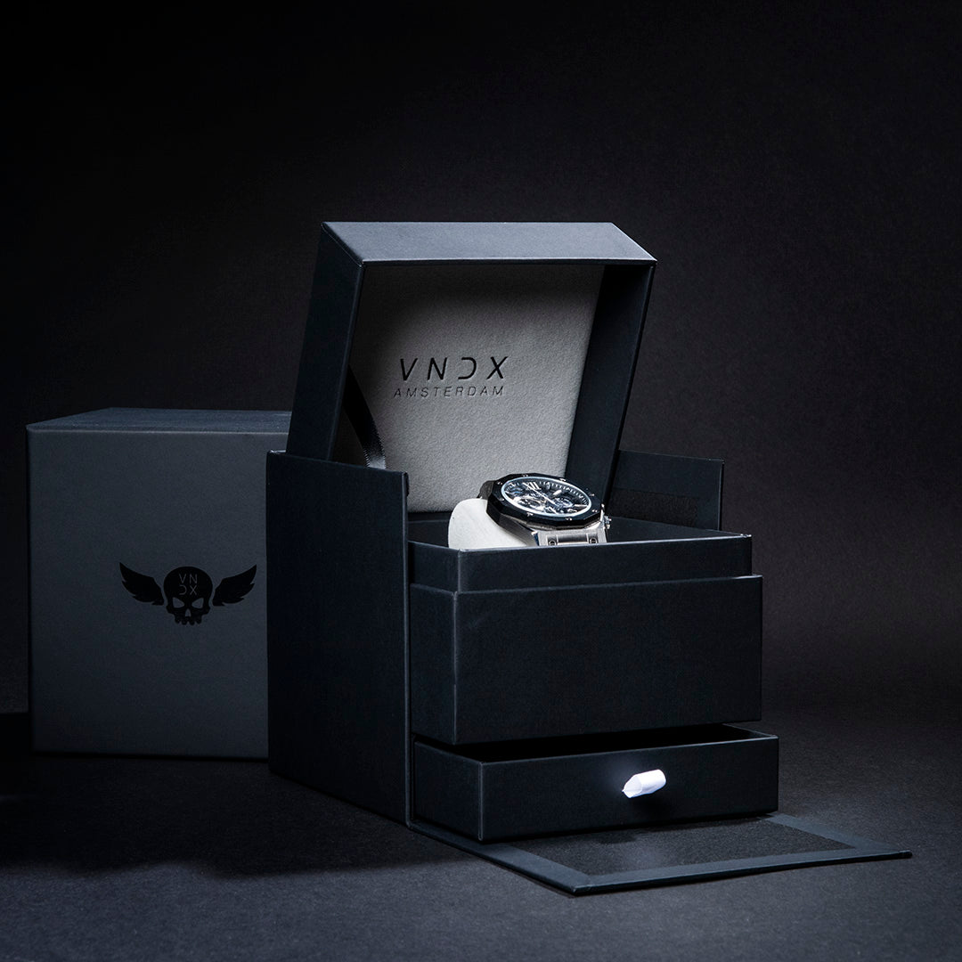 Ben jij dé Wise Man bij wie dit horloge perfect past? Dit stoere en uitgesproken horloge sluit perfect aan op wie jij bent! De mat geborstelde goud stalen band gecombineerd met de elegante witte wijzerplaat is de kroon op jouw outfit. Met deze stoere kleurencombinatie en het stijlvolle ontwerp gaat dit horloge je niet snel gaan vervelen! Voorzien van een chronograaf kent deze Wise Man verschillende mogelijkheden. Bang om het horloge te verliezen hoef je niet te zijn. Het horloge beschikt over een vouwsluiting die gezekerd is. Zo zorgt VNDX ervoor dat jij en je Wise Man nooit te laat zijn.  ''Be you, be wise and always do things you feel right about! The Wise Man''